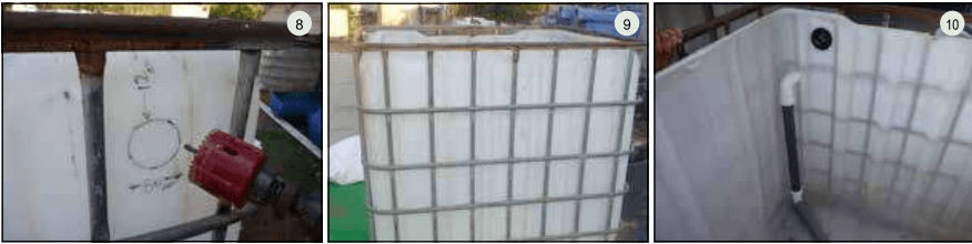 Maintenant que vous avez accès à l’intérieur, vous lavez l’IBC au savon et laissez sécher 24 h (7).