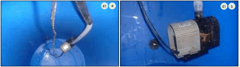 La pompe submersible est placée au fond du biofiltre (41a et 41b).