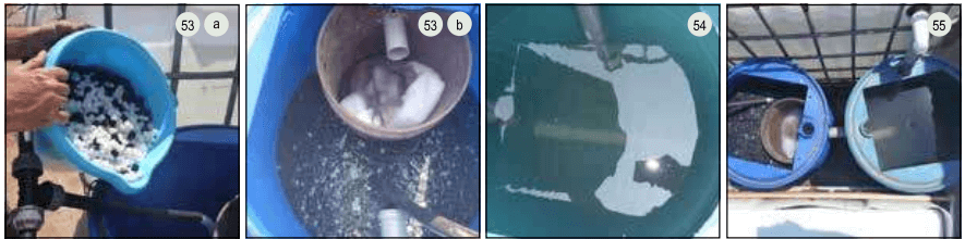 Remplissez le biofiltre avec le substrat et l’eau (53a et 53b).