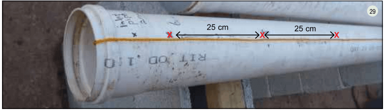 Marquez un point tous les 25 cm le long de la corde (29) qui sera le point central pour les trous.