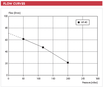 💡Par exemple, la pompe AP-40 est capable de fournir un débit max de 70 L/min en sortie de pompe et jusqu’à 20 L/min avec une pression de 0.2 bar (ou 200 mbar).
